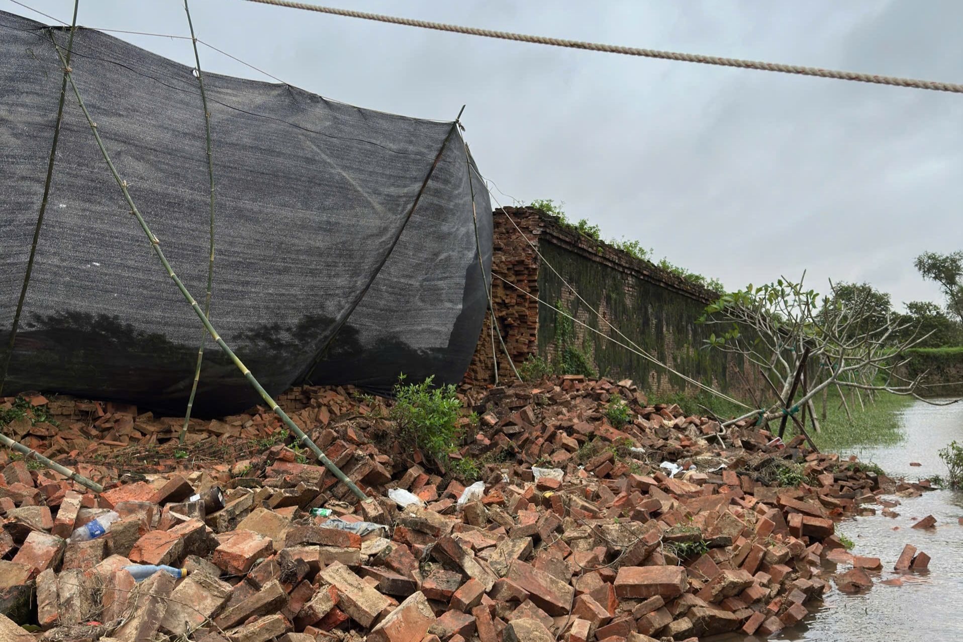 Trung tâm Bảo tồn Di tích Cố đô Huế đang phối hợp đánh giá thiệt hại và đề xuất phương án khắc phục một đoạn tường gạch Hoàng Thành Huế bị sập do mưa lũ.